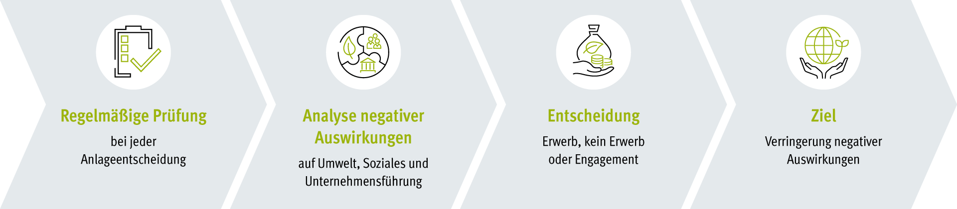 Diese Prüfung erfolgt im Rahmen der sogenannten "Berücksichtigung der wichtigsten nachteiligen Auswirkungen auf Nachhaltigkeitsfaktoren" (sog. principal adverse Impacts, kurz PAI).